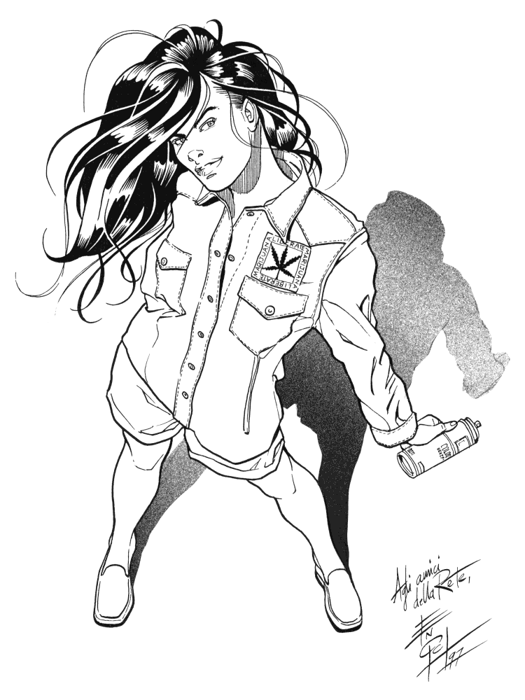 , creatura fumettistica del buon Luca Enoch (attualmente occupato a tempo pieno con Gea, uno dei pochi albi bonelliani di qualità), giovane graffitara dal carattere esplosivo e trascinante della quale si possono trovare le gesta nelle migliori fumetterie specializzate (la cui lettura, inutile sottolinearlo, è rigorosamente obbligatoria!).